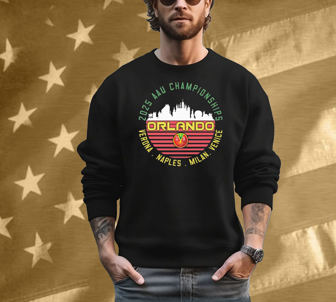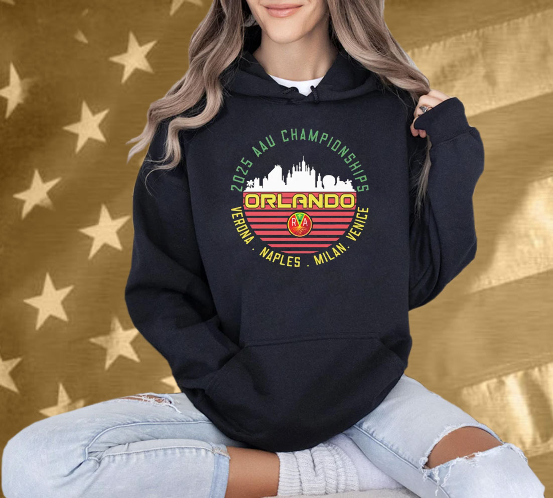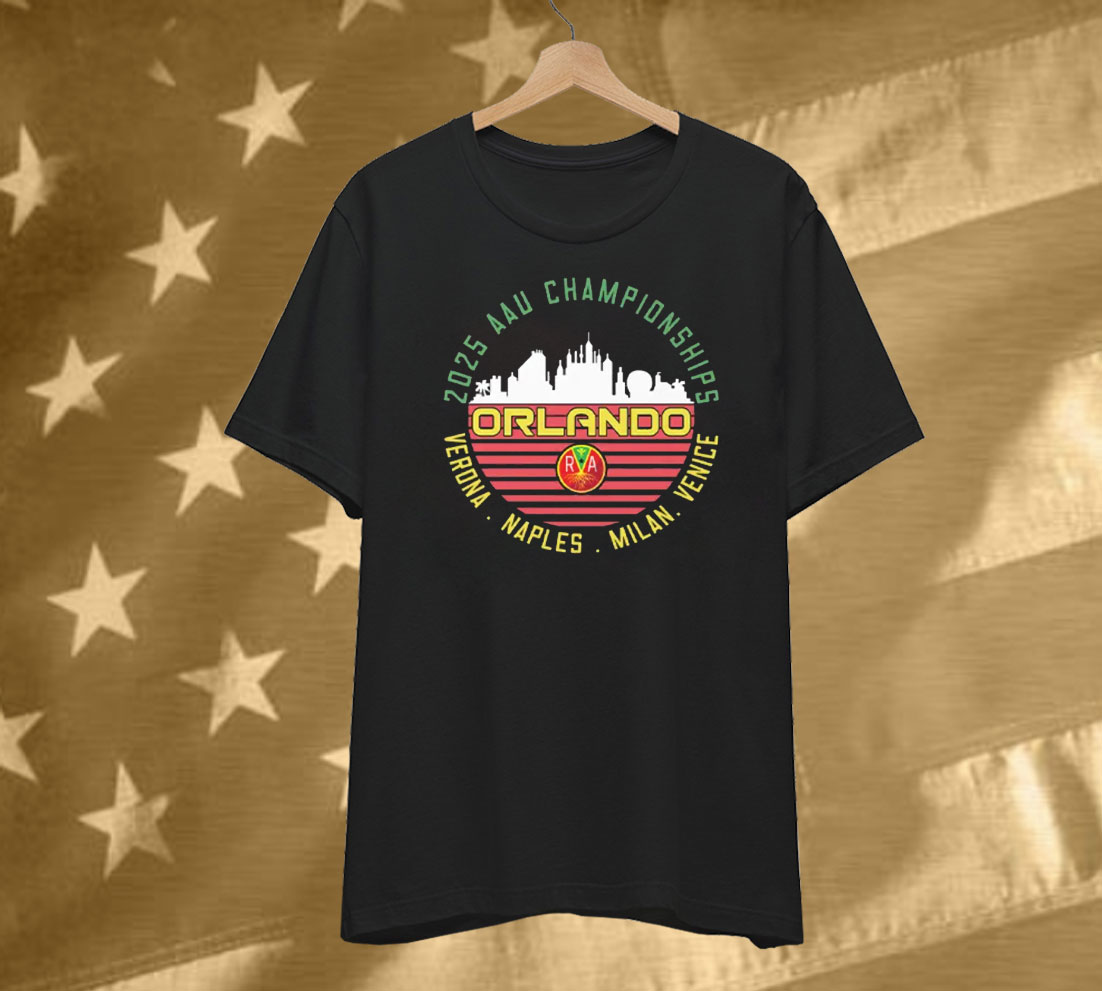Celebrate the electrifying energy of the 2025 AAU Championships in Orlando with our commemorative T-shirt! This premium, 100% cotton tee boasts a comfortable, classic fit perfect for everyday wear or showing your AAU pride at the games. Featuring a bold, vibrant design showcasing the official 2025 AAU Championships logo alongside the iconic Orlando skyline, this shirt is a must-have for athletes, coaches, families, and fans alike. The high-quality print ensures lasting durability and vibrant colors, even after multiple washes. More than just apparel, this shirt is a tangible reminder of the unforgettable athleticism, competition, and camaraderie experienced at the Championships. Own a piece of history and show your support for the future stars of tomorrow. Order yours today and become part of the 2025 AAU Championships legacy!