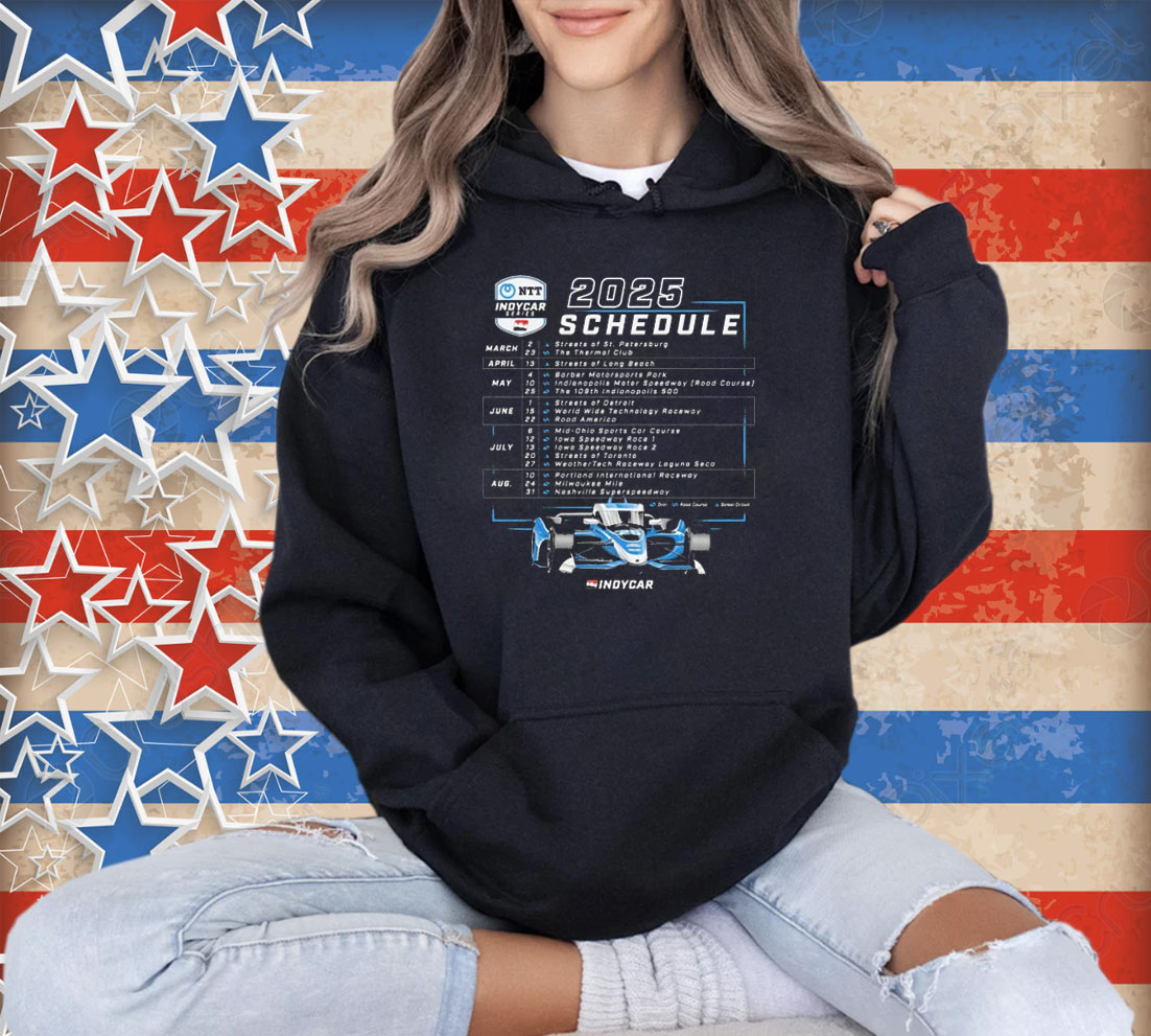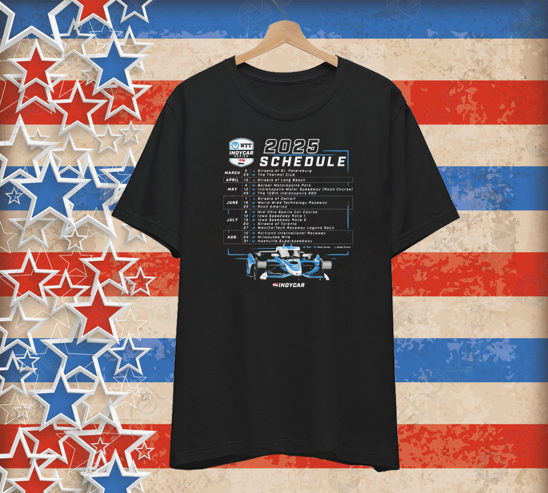 Gear up for the thrill of the 2025 NTT INDYCAR SERIES season with our official schedule t-shirt! This premium-quality tee boasts a vibrant, full-color print showcasing the complete 2025 race calendar, featuring all tracks and dates. Made from 100% soft cotton for ultimate comfort, this shirt is perfect for race day, casual wear, or showing your INDYCAR pride year-round. More than just a shirt, it’s a conversation starter, a collector’s item, and a testament to your passion for open-wheel racing. Never miss a race again – keep the entire season’s schedule at your fingertips. Experience the speed and excitement of INDYCAR, one comfortable wear at a time.