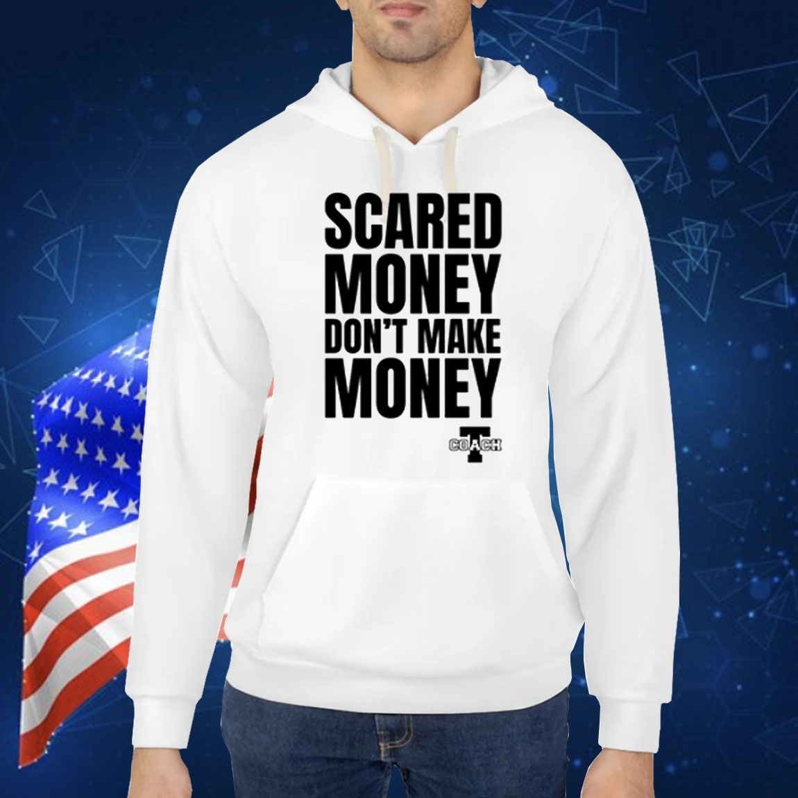 Statement Design: Features the iconic phrase “Scared Money Don’t Make Money” with a nod to Aaron Rodgers.