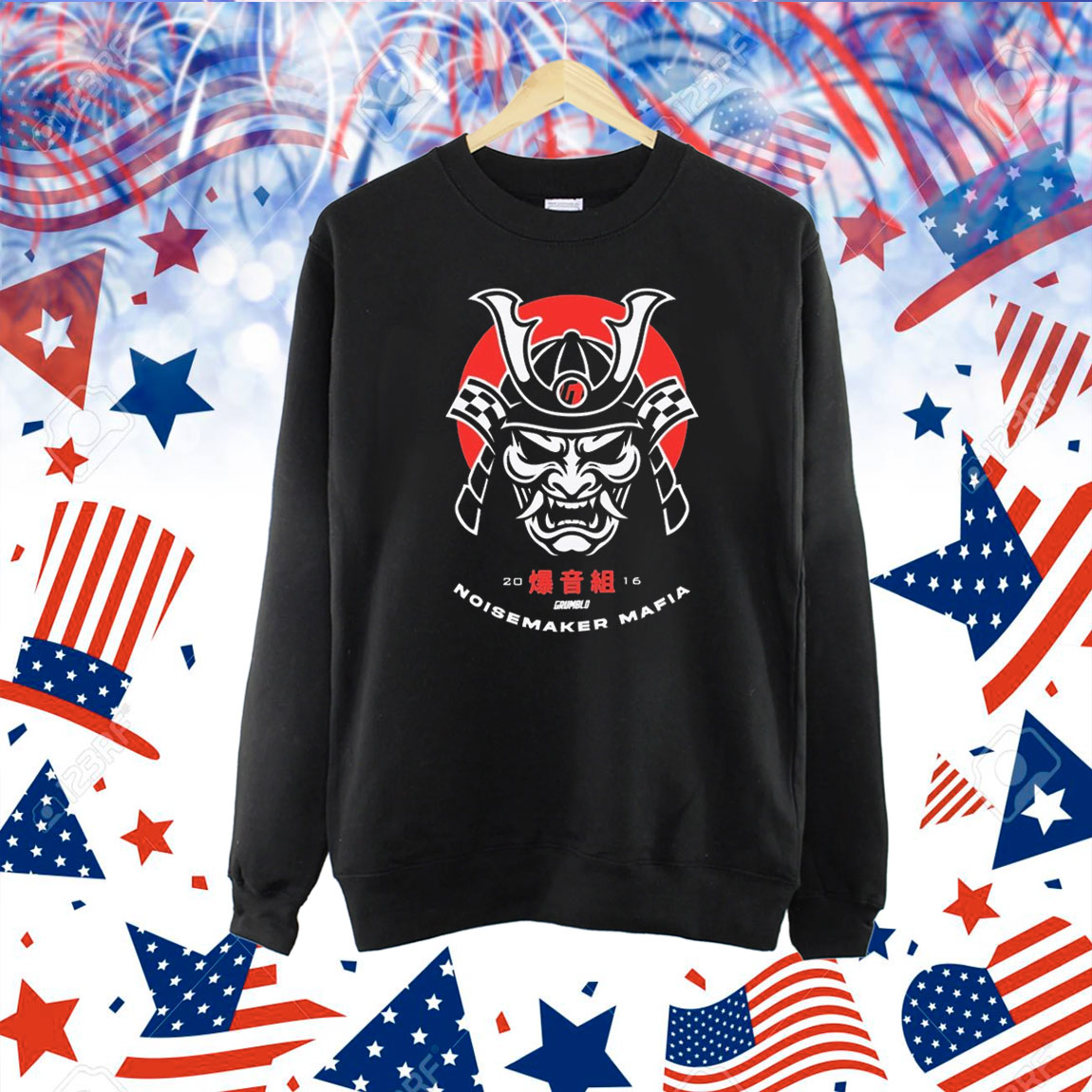 Eye-Catching Graphic: Showcases the Grumblo Noisemaker Mafia Samurai design.