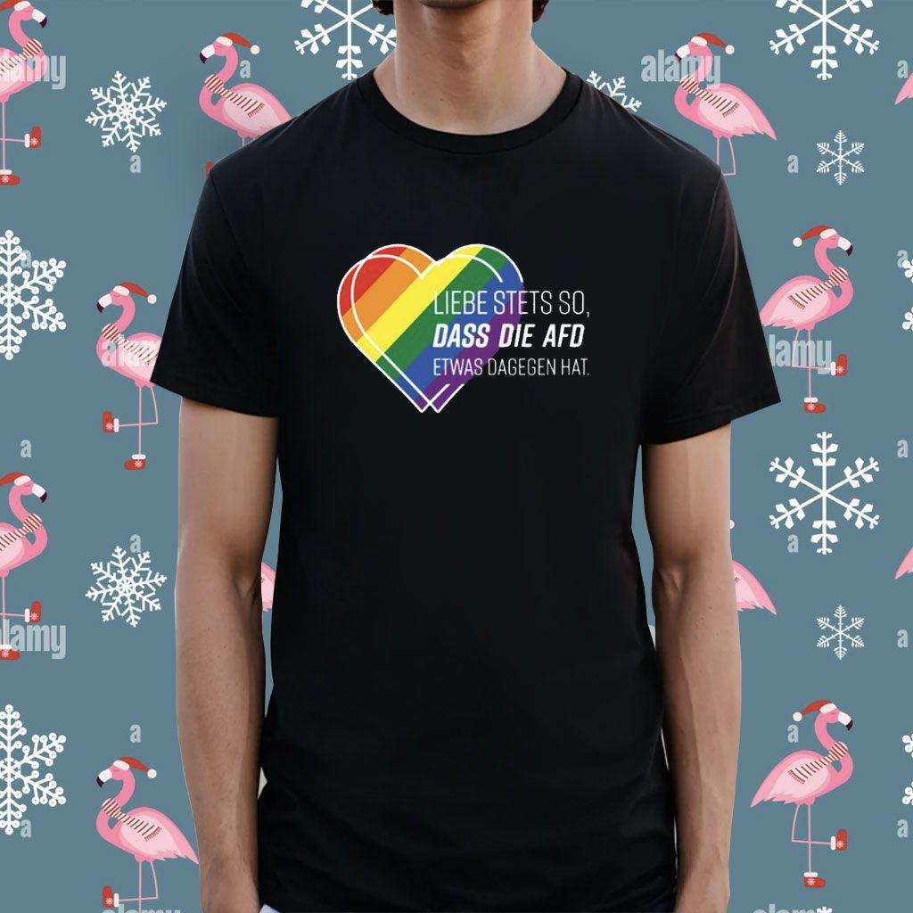 But the Liebe Stets So Dass Die Afd Etwas Dagegen Hat Shirt is more than just a fashion statement. By wearing this shirt, you are actively contributing to the fight against discrimination and intolerance. You are showing your support for a society that embraces diversity, love, and acceptance.